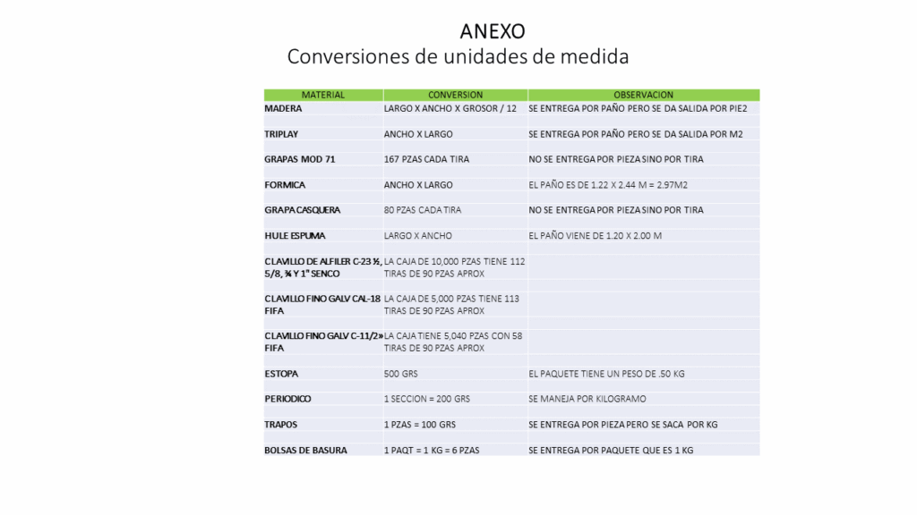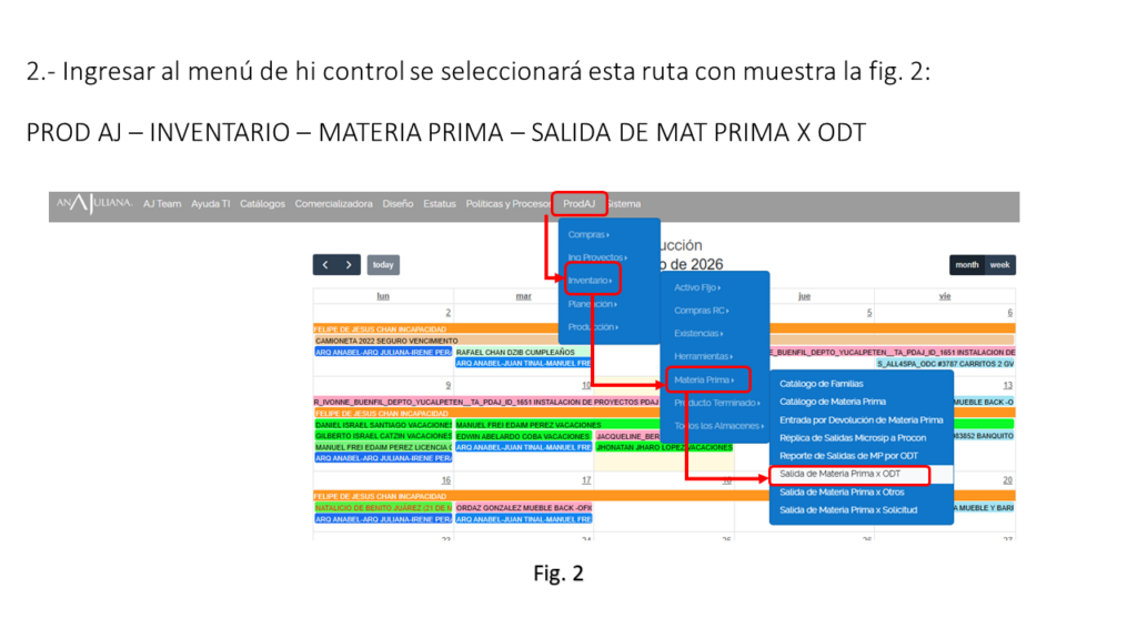 Salida de materia prima por ODT