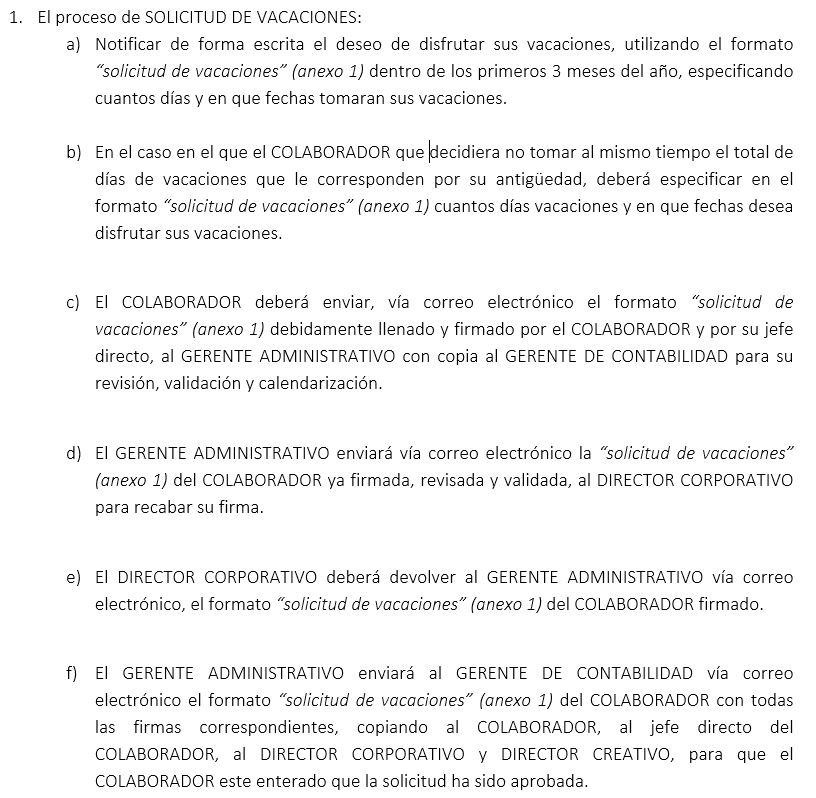 • Políticas y procesos firma protocolo Acabados