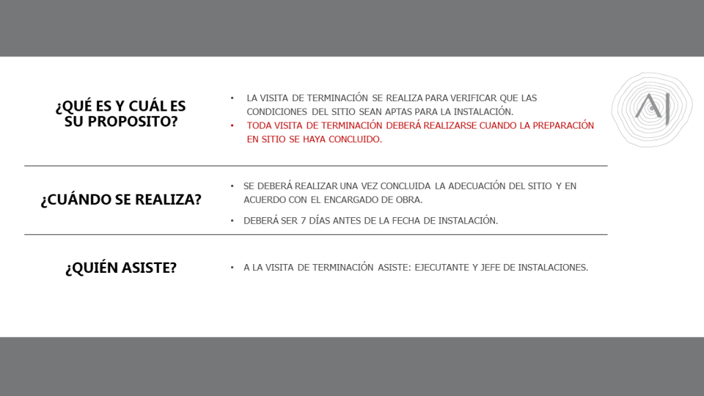 Entrega de PT para instalación